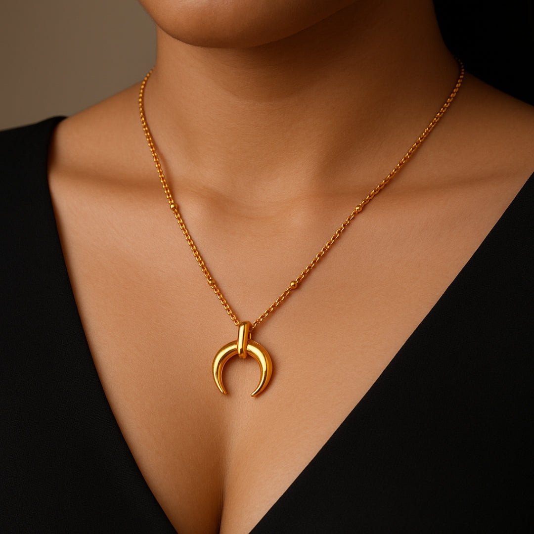 🖤 LunaGlow Crescent Pendant – 18K Gold Plated Necklace